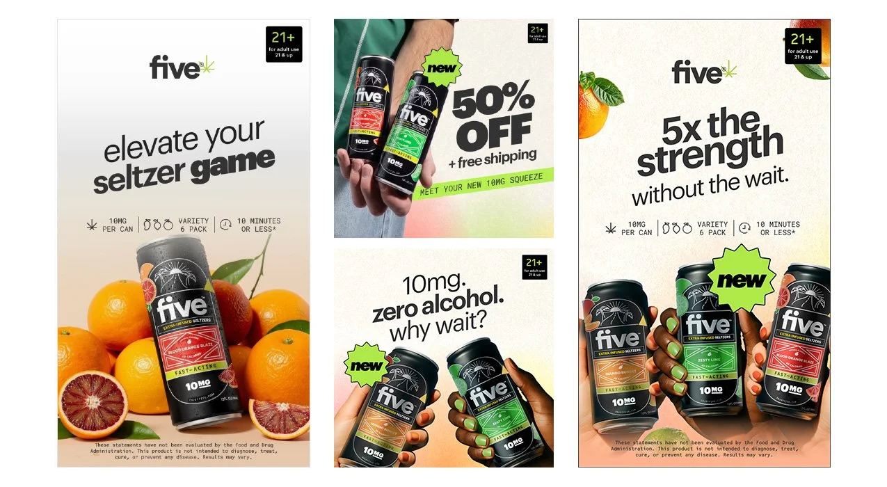 Launch and promote five’s new 10mg THC craft seltzer with a full-funnel campaign that grows the overall seltzer business, captures consumers who prefer stronger effects, and achieves $1M in sales within the first 6 months.